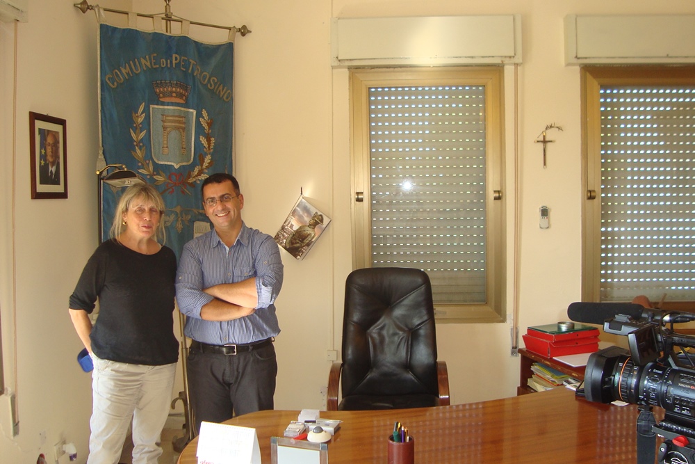 La scorsa settimana una troupe giornalistica francese è stata in visita a Petrosino per girare un documentario sulla Sicilia. Il Sindaco Giacalone ha aperto le porte del Comune concedendo un’intervista alla giornalista Fulvia Alberti, italiana ma da trent’anni residente a Parigi. La Alberti è una documentarista apprezzata in tutta Europa per i suoi reportage fatti nelle zone di guerra. Dal ’91 in Kurdistan e Iraq ha raccontato la guerra del golfo. Nel 2005 in Kosovo ha girato “Fatmire”, la storia di una giovane kosovara e i drammi delle minoranze etniche vissute a Mitrovica. Altri suoi lavori: “Grazie, Berlusconi!” e “Turista Illegale”, racconta la storia di Soran, un kurdo-iraniano fuggito dal suo paese, che dopo aver attraversato mezza Europa, cinque mesi di prigione e uno di sciopero della fame, ha potuto raggiungere l’Inghilterra e chiedere finalmente asilo politico. Il documentario girato in Sicilia verrà trasmesso da France 3 e da France 3 Corse agli inizi del 2014.