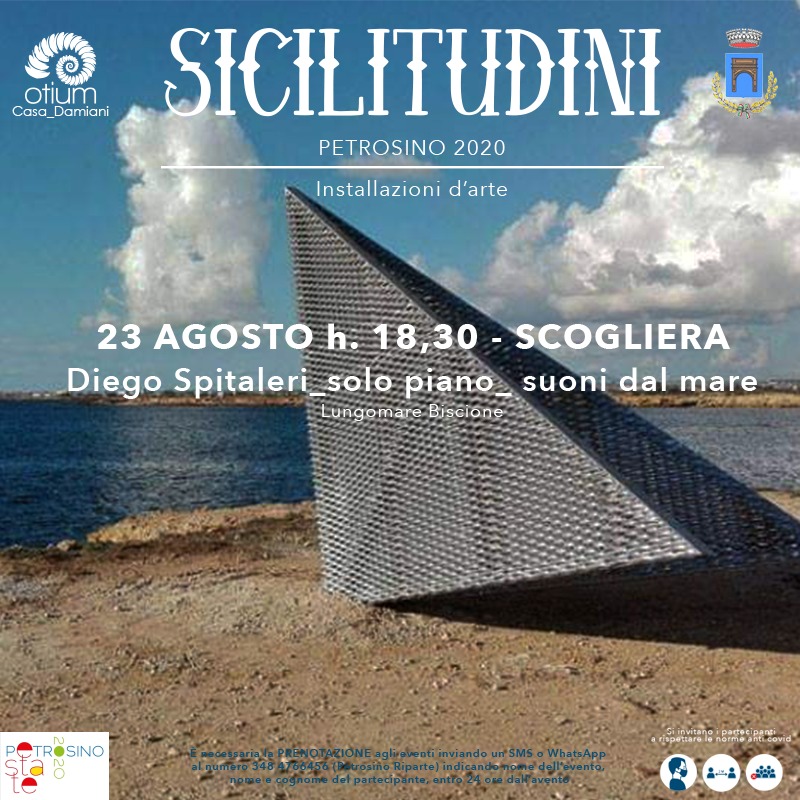 Si terrà domenica prossima (23 agosto) il terzo e ultimo appuntamento con “Sicilitudini”, l’iniziativa artistico-culturale promossa dall’Associazione Otium_Casadamiani di Marsala nell’ambito delle manifestazioni estive 2020. Alle ore 19 sul lungomare Biscione (Calascirocco) andrà in scena “Diego Spitaleri_solo piano_suoni dal mare". Un concerto per solo piano eseguito dal pianista e compositore Diego Spitaleri: docente di pianoforte jazz e moderno, nato a Palermo nel 1959, ha iniziato l'attività concertistica nel 1979 e ha all'attivo oltre 1.500 concerti nell'ambito italiano ed internazionale nonché partecipazioni a trasmissioni radiofoniche e televisive.