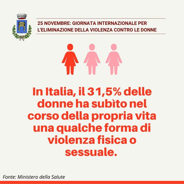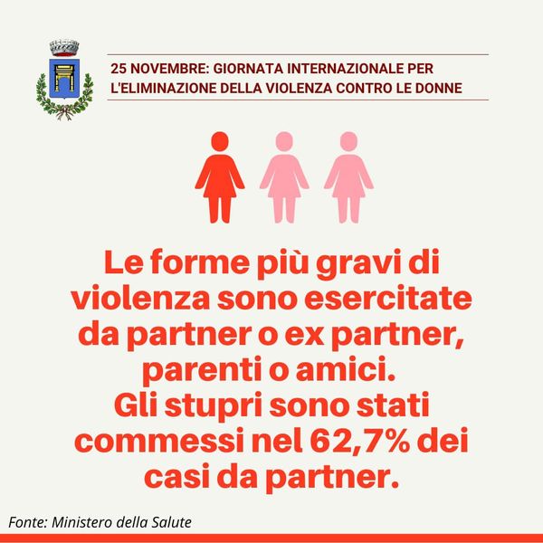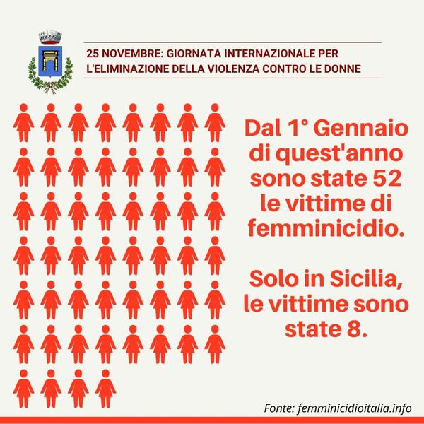«Dall'inizio dell'anno in Italia sono state uccise 104 donne, 88 delle quali in ambito affettivo o familiare, 52 per mano del partner o dell'ex. Numeri che non possono lasciarci indifferenti e che in questa giornata ci impongono un'ulteriore riflessione su quanto sia ancora lunga la strada da percorrere per contrastare la violenza contro le donne - dichiara il sindaco Giacomo Anastasi - Bisogna puntare, in famiglia e a scuola, sull'educazione al rispetto, alla parità di genere, all'idea che la forza non può costituire uno strumento di dialogo».