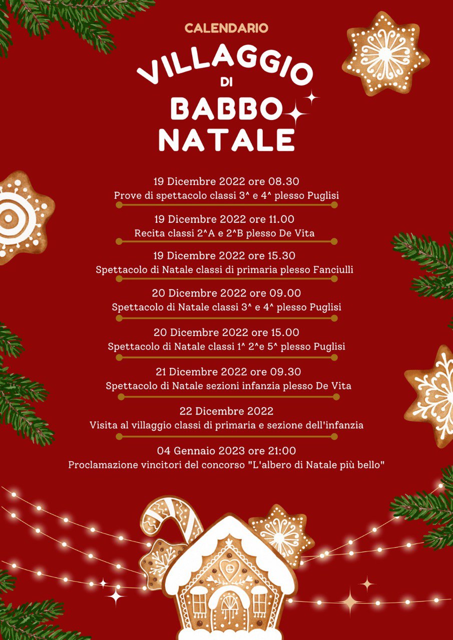 Villaggio di Babbo Natale: dal 19 dicembre spettacoli e recite con gli alunni dei plessi Puglisi, De Vita e Fanciulli