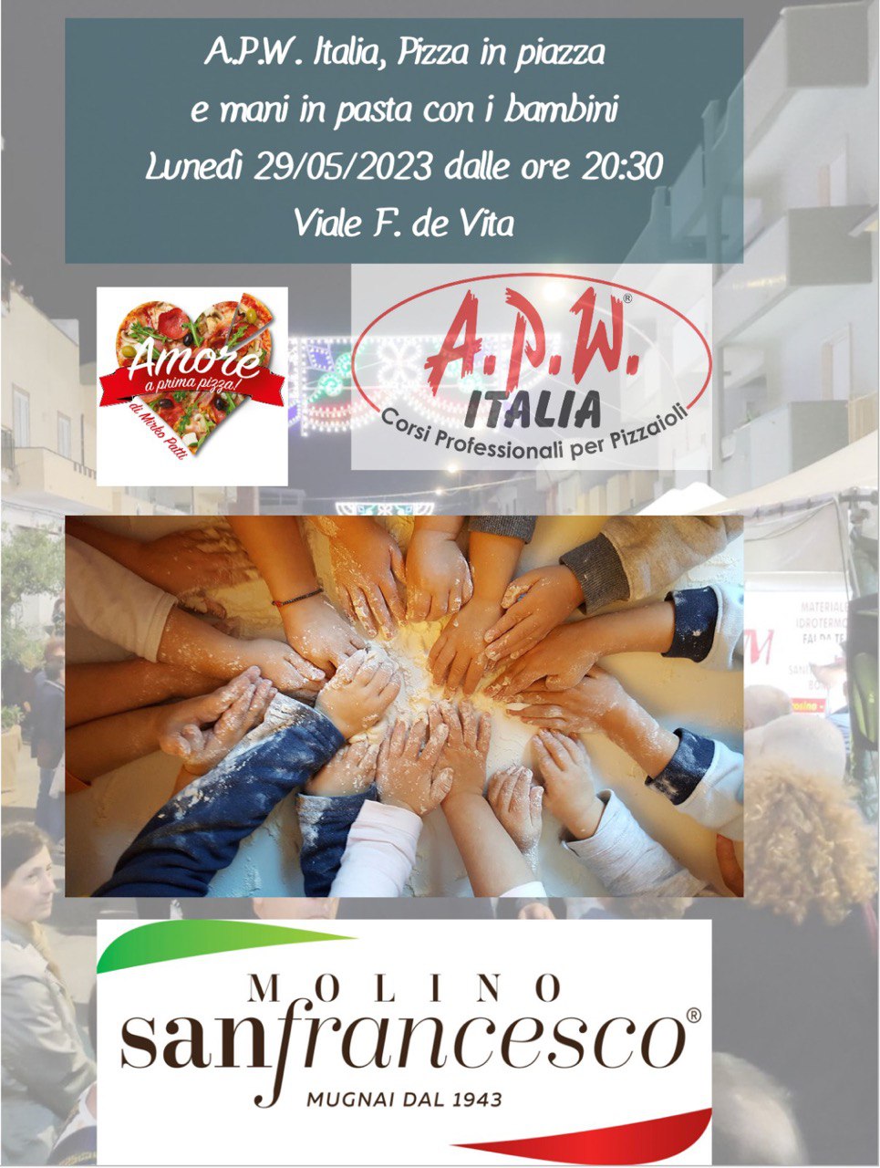 Questa sera, alle ore 20.30, in viale F. De Vita, appuntamento con l'iniziativa "Pizza in piazza e mani in pasta con i bambini".
