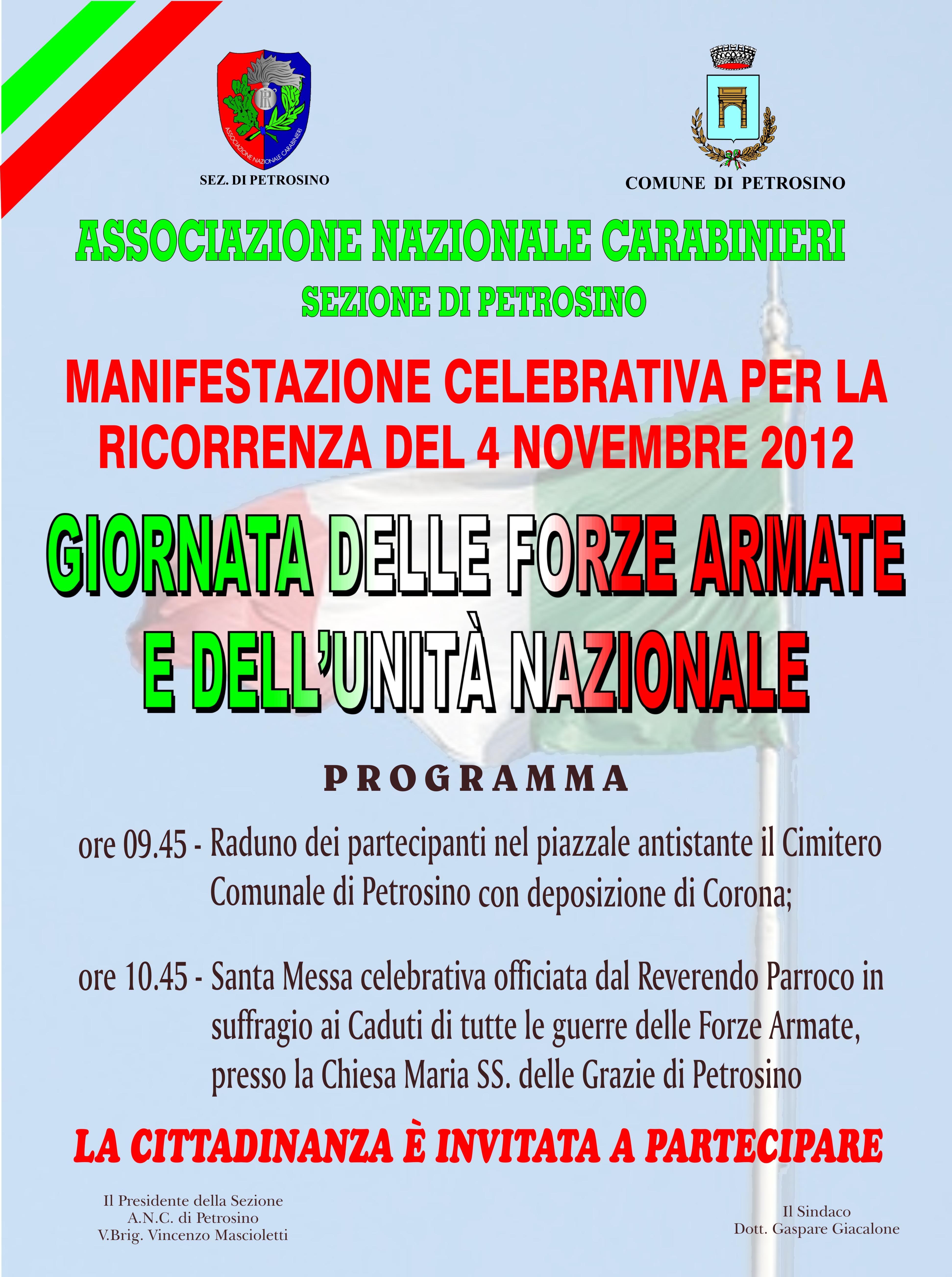 Manifestazione Celebrativa per la Ricorrenza del 4 Novembre 2012