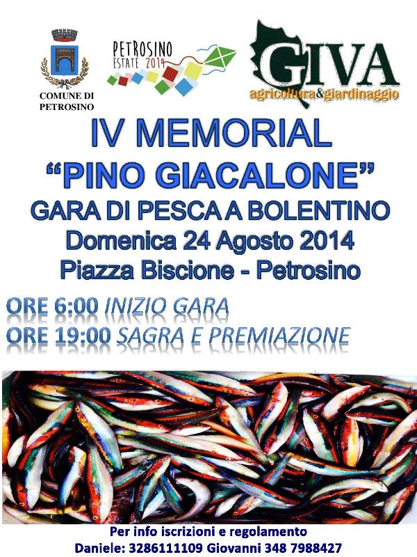 Si svolgerà, domenica 24 agosto, la IV edizione del “Memorial Pino Giacalone – Gara di Pesca e Sagra del pescato”. Ancora una volta, protagonisti di Petrosino Estate 2014, saranno i sapori della tradizione culinaria legata al mondo della pesca e alla storica, piccola marineria del borgo marinaro di Biscione. La manifestazione si svolgerà in due momenti.