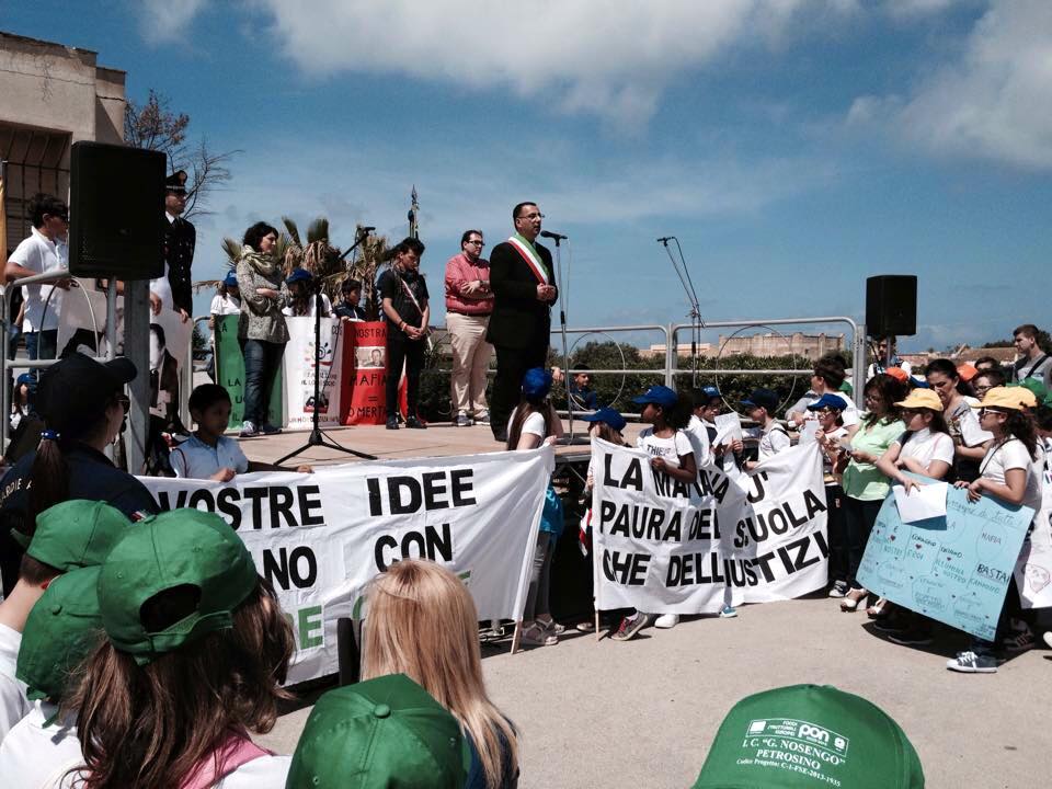 Grande partecipazione pubblica questa mattina al 2° Corteo della Legalità di Petrosino che ha visto coinvolti gli studenti dell’istituto comprensivo “Gesualdo Nosengo” e dell’Istituto Tecnico per Gemetri “Vincenzo Accardi”. Un corteo che, assieme al sindaco Giacalone, alla giunta municipale, i docenti, le autorità civili e militari, e al giudice Annalisa Amato, è iniziato dalla scuola media Nosengo, e lungo le vie cittadine ha voluto ricordare chi come Giovanni Falcone, Paolo Borsellino e le tante vittime della mafia, hanno lottato contro l’illegalità, la prevaricazione, l’arroganza e il non rispetto delle regole, semplicemente facendo bene il proprio lavoro e il proprio dovere. Con questa manifestazione, la cui organizzazione si deve al lavoro del preside dell’Istituto Nosengo, Giuseppe Inglese, si ribadisce ancora una volta il messaggio che dalla scuola, dall’educazione alla cultura della legalità dei nostri studenti, deve partire quel segnale forte di vero cambiamento della nostra società.