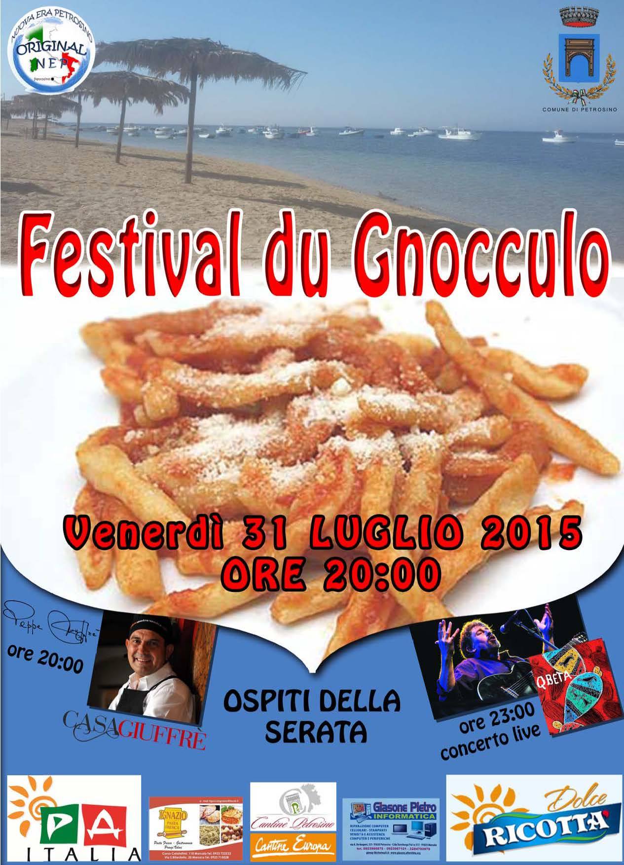 I sapori, la bontà dei prodotti biologici e l’arte di Peppe Giuffè quest’anno si incontrano al “Festival dello Gnocculo” di Petrosino. questa sera , alle ore 20.00 in piazza Biscione, sarà infatti il cuciniere trapanese - come lui si definisce -, testimonial della cucina mediterranea, l’ospite e protagonista dell’edizione 2015 del “Festival dello Gnocculo”. L’evento, alla presenza del sindaco e degli altri amministratori comunali, si aprirà con uno show cooking da parte di Giuffrè che, preparerà un sugo tipico siciliano con ingredienti da produzione biologica e proseguirà con la degustazione del piatto preparato. La serata, poi, continuerà con il percorso gastronomico del gruppo “Original Nep”con gli assaggi di due tipologie di piatti a base di gnoccule: uno al sugo di melenzane e pesce spada; l’altro con funghi e salsiccia. La degustazione sarà accompagnata da un buon bicchiere di vino offerto dalle cantine locali e per finire dal prodotto tipico della pasticceria locale, il cannolo farcito di ricotta del luogo.