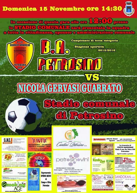 Una nuova stagione calcistica inizia a Petrosino. Domenica 15 novembre alle ore 12:00, presso lo Stadio Comunale, verrà presentata alla cittadinanza, alla presenza dell’amministrazione comunale e degli sponsor, l’ A.S.D. Bianco Arancio di Petrosino. La neo formazione, allenata dal duo Giuseppe D’Alberti e Fabio Casano, fortemente voluta da un gruppo di giovani appassionati che vogliono far bene attorno ad un progetto che prevede anche una scuola di calcio, ha debuttato nel campionato di terza categoria, domenica scorsa, con una vittoria sul campo del Partanna. Il calcio torna nello stadio di Petrosino che, finalmente dopo tanti anni ha visto il completamento dei lavori di realizzazione delle tribune, e dove, a breve verranno installati nelle torri faro degli innovativi fari a Led a basso consumo. Al termine della manifestazione inaugurale, alle 14:30 seguirà il debutto interno in campionato contro la squadra “Nicola Gervasi Guarrato”. “L’avvio del campionato di calcio della squadra di Petrosino è sicuramente un momento importante per tutta la nostra comunità - le parole dell’assessore allo Sport Federica Cappello -. Lo sport come aggregatore sociale è tra le risorse del nostro territorio che vogliamo continuare a sostenere e promuovere ”.