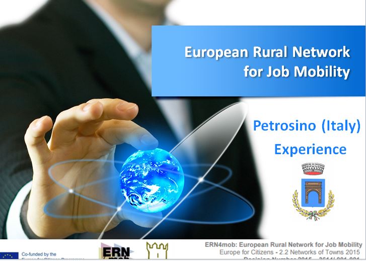 In rappresentanza del Comune, l’assessore ai Lavori Pubblici, Rocco Ingianni e il presidente della Commissione Finanze, Massimo Mezzapelle, hanno presentato, oltre ai dati del comune di Petrosino, anche le politiche intraprese a sostegno dell’occupazione e quelle che riguardano anche i principali canali d’ingresso nel mondo del lavoro, portando come esempio di buone pratiche, tra le altre, quello dell’assegno civico come sistema di contrasto all’esclusione sociale, ma anche il bando Stand Up per la promozione e lo sviluppo delle politiche del lavoro giovanile. A questo primo incontro i comuni hanno portato le loro esperienze e quelli che sono i loro programmi, per cercare di capire quali sono i singoli problemi nelle diverse realtà locali d’Europa e dall’analisi di questi dati alla fine del percorso intrapreso si relazionerà alle istituzioni europee per poter intraprendere degli interventi unitari per le politiche di sviluppo della mobilità del lavoro dedicata alle comunità rurali. Questo il calendario dei prossimi incontri :- Kostrzyn nad Odrą (Poland); 16-20/5/16