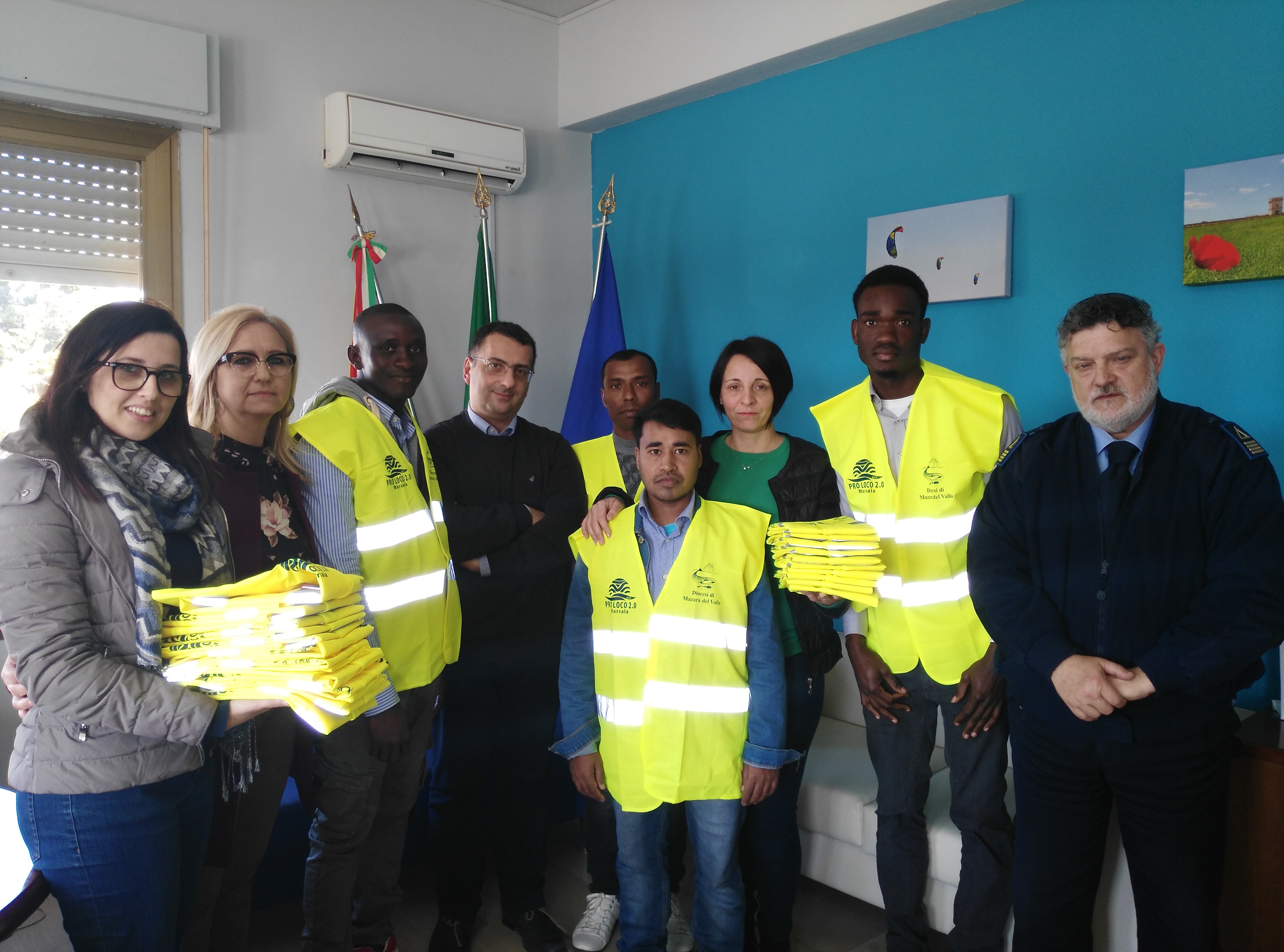 Una rappresentanza di migranti richiedenti asilo, ospiti delle comunità petrosilene Fo.Co e Arca, ieri mattina è stata ricevuta dal sindaco Gaspare Giacalone e dal vice sindaco, Marcella Pellegrino, per la consegna di corpetti con bande catarifrangenti. L’iniziativa, ideata dal Vescovo della Diocesi di Mazara del Vallo, Monsignor Domenico Mogavero, e dal presidente della Pro Loco 2.0, Mario Ottoveggio, è stata portata avanti per sensibilizzare al delicato tema della sicurezza sulle strade, soprattutto dopo l’ultimo tragico fatto di cronaca, nel quale è morto un giovane africano di 25 anni. “La sicurezza deve essere prioritaria per tutti coloro che percorrono le nostre strade – sostiene il sindaco Giacalone -. Le persone a bordo delle loro auto devono sicuramente fare più attenzione, ma anche i migranti devono mettere in atto tutte le azioni necessarie per essere più visibili mentre percorrono vie e strade, sia a piedi che in bicicletta. I giubbini sono soltanto un piccolo gesto, ma a mio avviso significativo perché indossarli può contribuire davvero a salvare delle vite umane”.