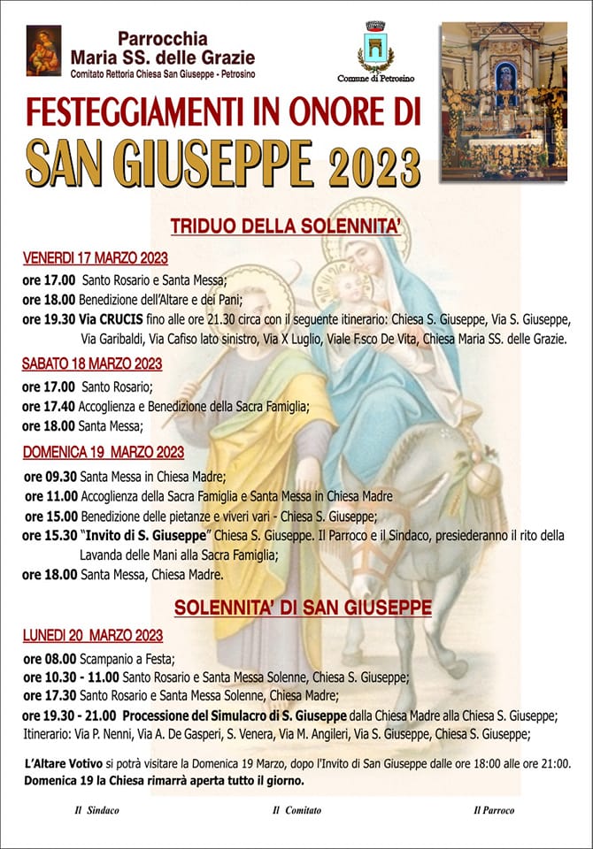 Sono in corso a Petrosino i festeggiamenti in onore di San Giuseppe, promossi dalla Parrocchia Maria SS. delle Grazie.