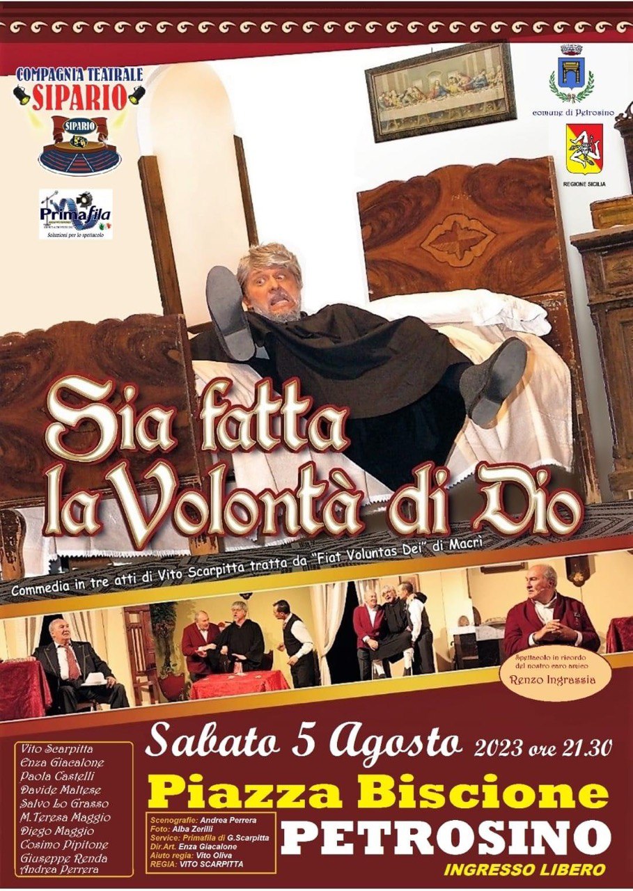 - ore 21:30, "Sia fatta la volontà di Dio", commedia in tre atti tratta da "Fiat voluntas Dei" di Macri e promossa dalla Compagnia Teatrale Sipario.