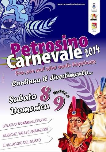 Domenica la giornata conclusiva, con la sfilata, a partire dalle ore 15.00, lungo le principali vie cittadine (Piazza della Repubblica, via X Luglio, via Cafiso, via De Gasperi, Via P.Nenni, Viale F. De Vita, Viale G. Licari, Piazza della Repubblica). Al termine della sfilata, la presentazione dei carri e le esibizioni, ed infine l’assegnazione del titolo di “Maschera simbolo del Carnevale di Petrosino 2014”.